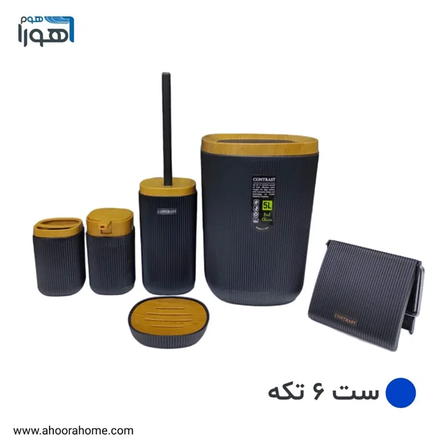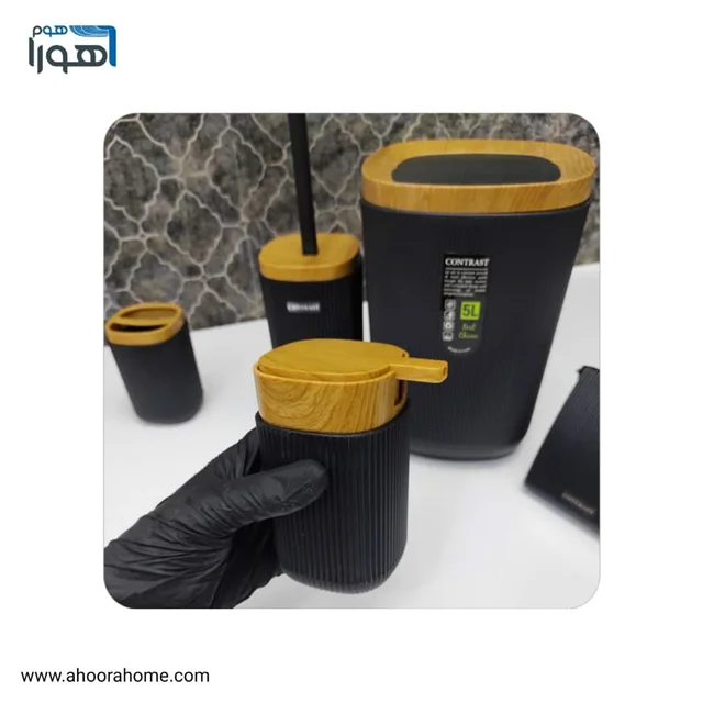 ست سرویس بهداشتی 6تکه کنتراست مدل روما مشکی طرح چوب
