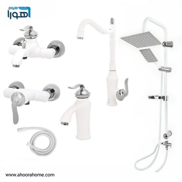 پک شیرآلات بارسا مدل بامبو سفیدکروم مجموعه 6عددی همراه با علمدوش استیل