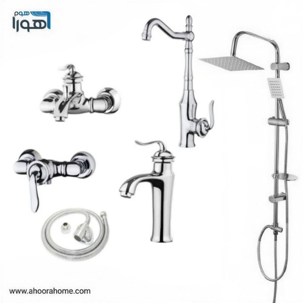 پک شیرآلات بارسا مدل بامبو سنگین کروم مجموعه 6عددی همراه با علمدوش استیل