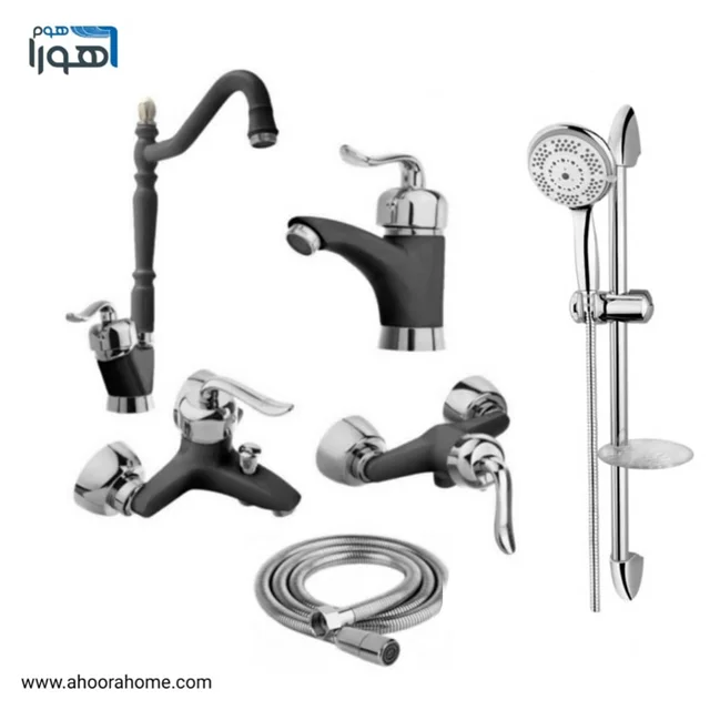 پک شیرآلات آلنر مدل قاصدک مشکی کروم مجموعه 6عددی