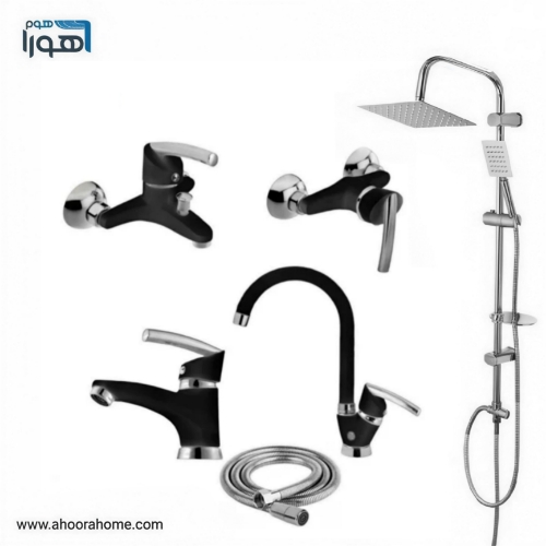 پک شیرآلات مدل تنسوپلاس مشکی کروم همراه با علمدوش استیل