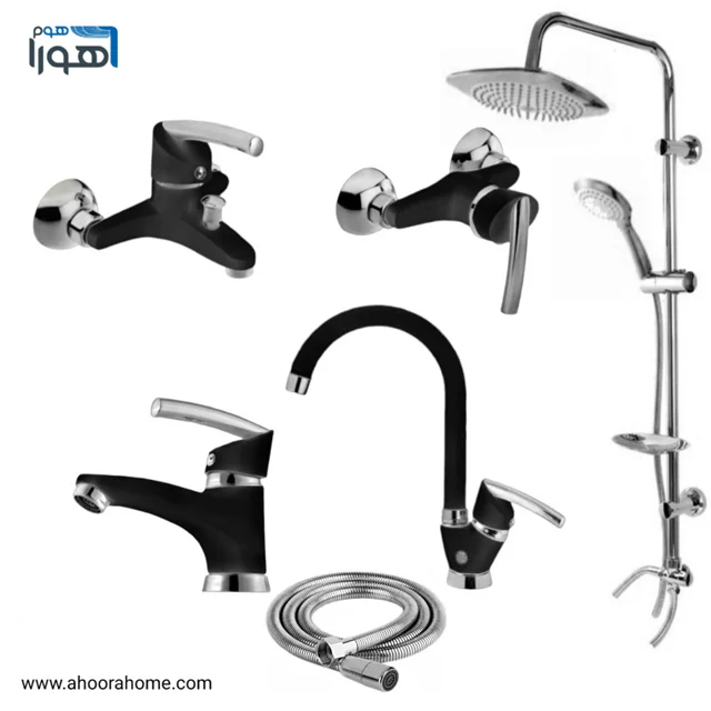 پک شیرآلات مدل تنسوپلاس مشکی کروم مجموعه 6عدد