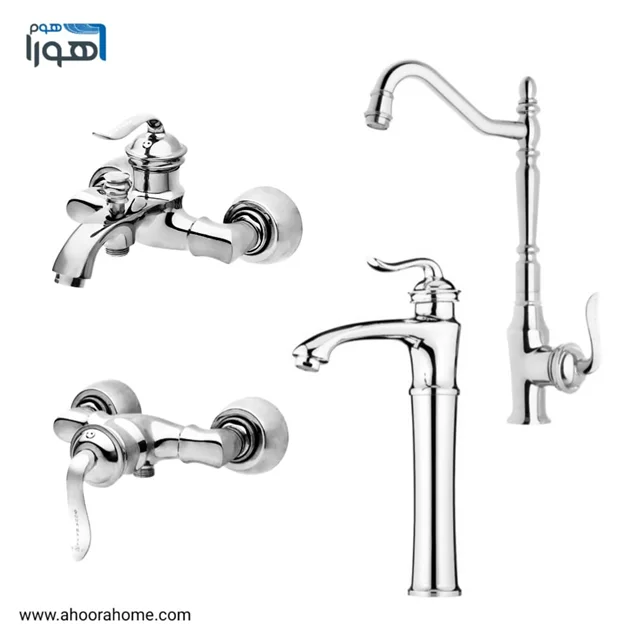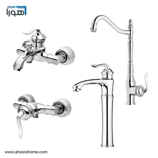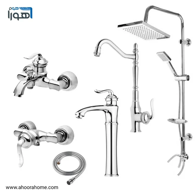 ست شیرآلات 6عددی بارسا مدل بامبو کروم ( روشویی پایه بلند) همراه با علمدوش دوکاره و شلنگ توالت AHOORA HOME